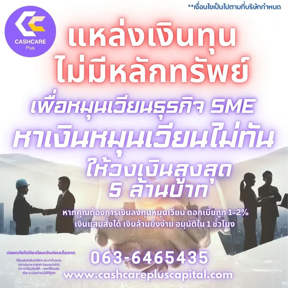 CASHCARE Plus เป็นหนึ่งในผู้ให้บริการ แหล่งเงินทุน ไม่มีหลักทรัพย์ ที่ตอบโจทย์ SME ด้วยบริการดังนี้