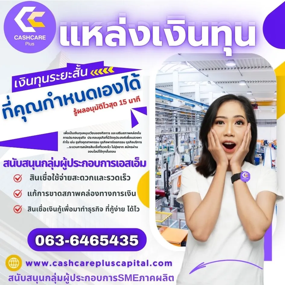 สมัครสินเชื่อธุรกิจจาก CashCare Plus — แหล่งเงินทุนระยะสั้นที่คุณกำหนดเองได้ อนุมัติไวสุด 15 นาที วงเงินสูง เงื่อนไขยืดหยุ่น เพื่อผู้ประกอบการ SME ภาคผลิต
